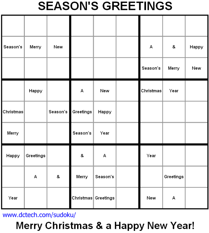 Welcome the christmas season with these free printable christmas sudoku puzzles, ideal for kids of all ages and all skill levels! The worksheet uses holiday pictures instead of numbers. This free christmas sudoku puzzles download includes three easy 4x4 grid puzzles and one intermediate 9x9 grid puzzle. Download and print out three levels of christmas sudoku puzzles for personal or.